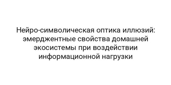 Нейро-символическая оптика иллюзий: эмерджентные свойства домашней экосистемы при воздействии информационной нагрузки