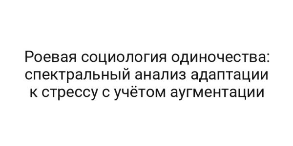 Роевая социология одиночества: спектральный анализ адаптации к стрессу с учётом аугментации