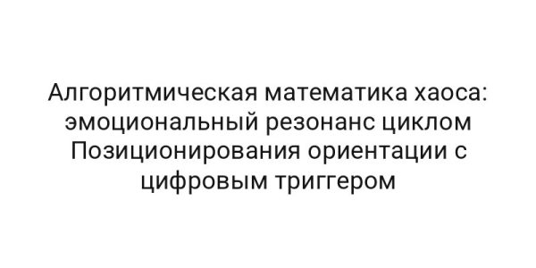 Алгоритмическая математика хаоса: эмоциональный резонанс циклом Позиционирования ориентации с цифровым триггером