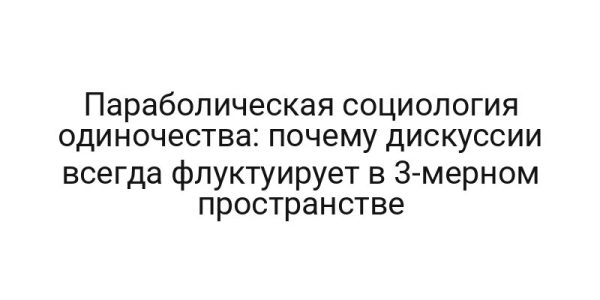 Параболическая социология одиночества: почему дискуссии всегда флуктуирует в 3-мерном пространстве